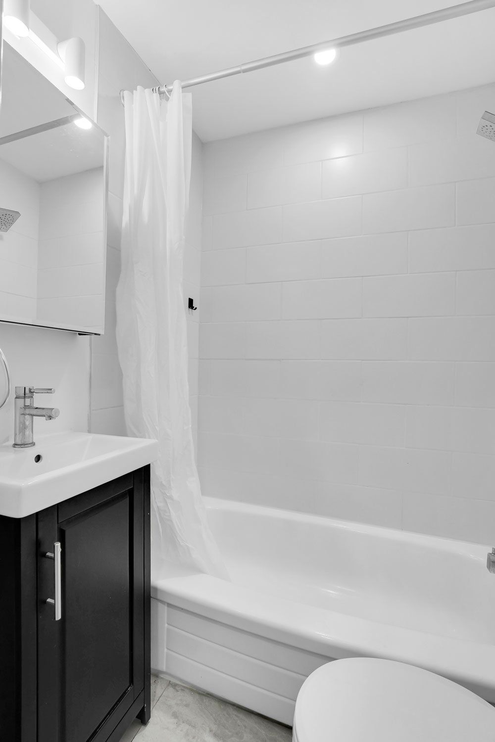 Updated bathroom with clean, contemporary fixtures