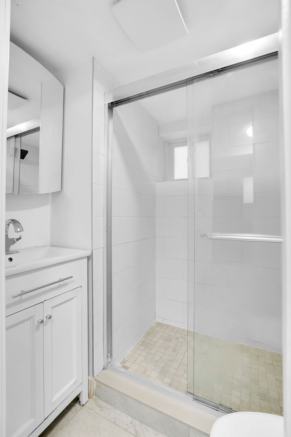 Updated bathroom with clean, contemporary fixtures